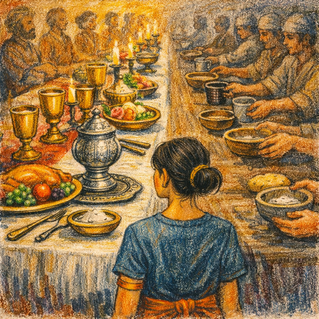 และอีกจำนวนมาก มีหน้าที่หิวอย่างเงียบ ๆ เพื่อให้โต๊ะของคนข้างบนเต็มบริบูรณ์