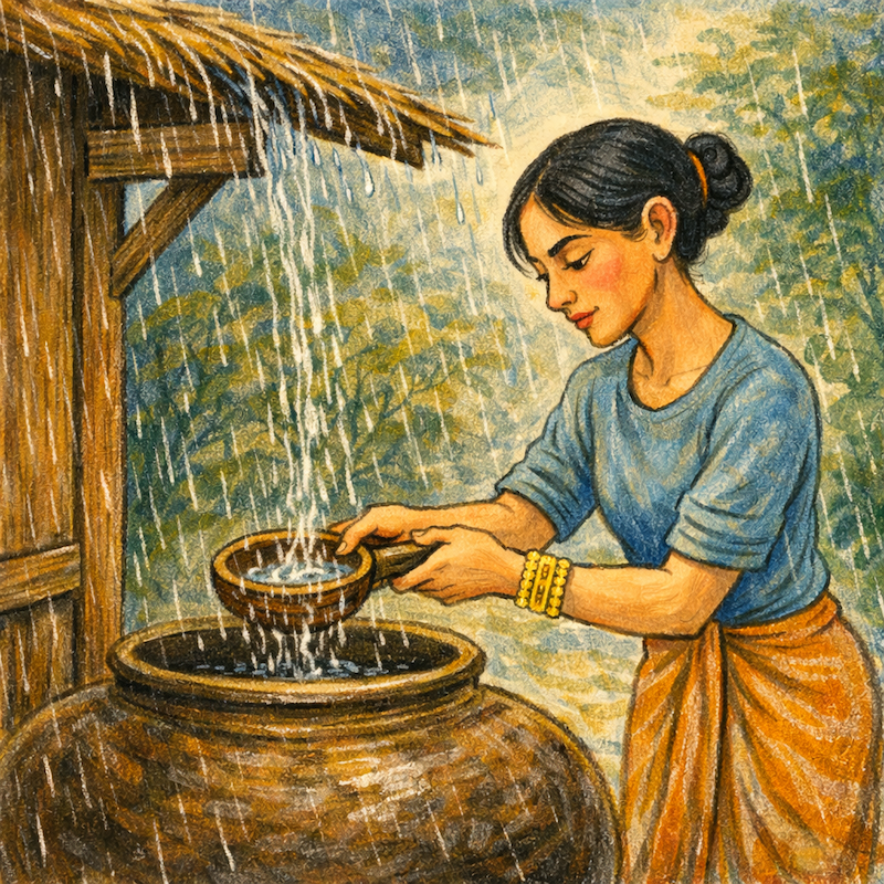 หลายบ้านจึงมีวิธีรองน้ำฝนเก็บไว้